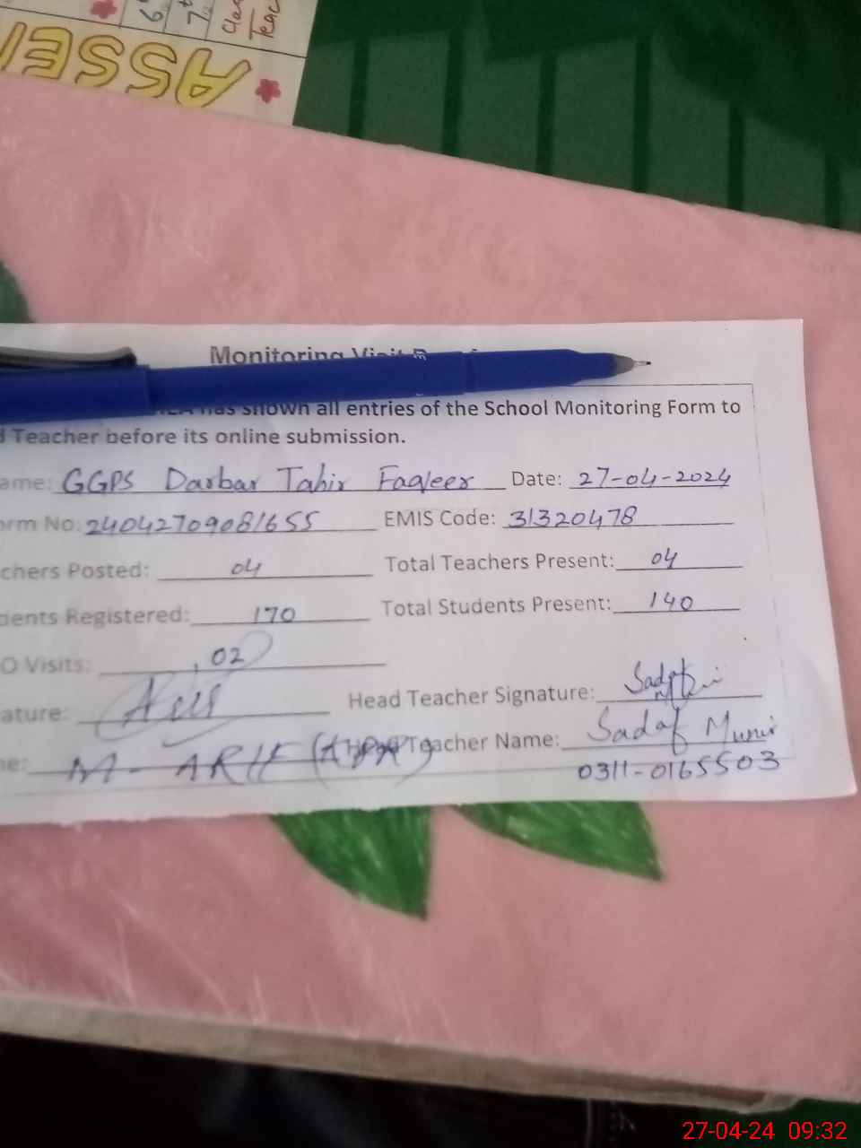 | EMIS Code: 31320478 | Name of School: GGPS DARBAAR TAHIR FAQEER KACHI MANDI | |||