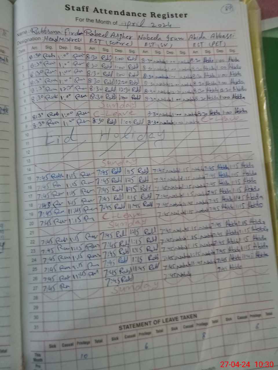 | 31**** | Sa**** La**** | 1 | 1 | 0 | 0 | 0 | 0 | 0 | 0 | 0 | 0 | 0 | Exam Duty |