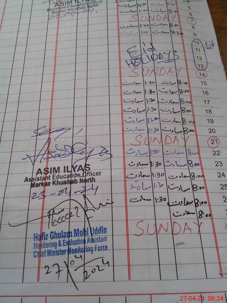 | Monitoring Date: 27-04-2024 | Start Time: 27-04-2024 08:10 AM | End Time: 27-04-2024 08:42 AM | Name of MEA: HA**** GH**** MO**** UDDI**** | |