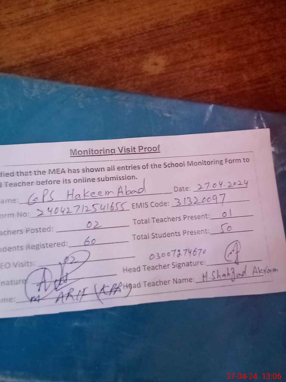 | EMIS Code: 31320097 | Name of School: GPS HAKEEM ABAD | |||