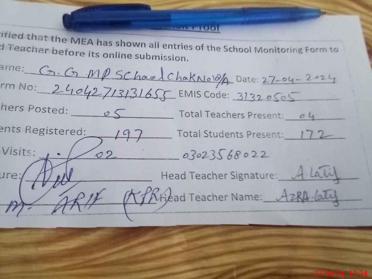 | Name: AZ**** LA**** Designation: (School Headmaster's/Headmistress's) PST/PTC/JV Phone/Cell Number: 03**** |
