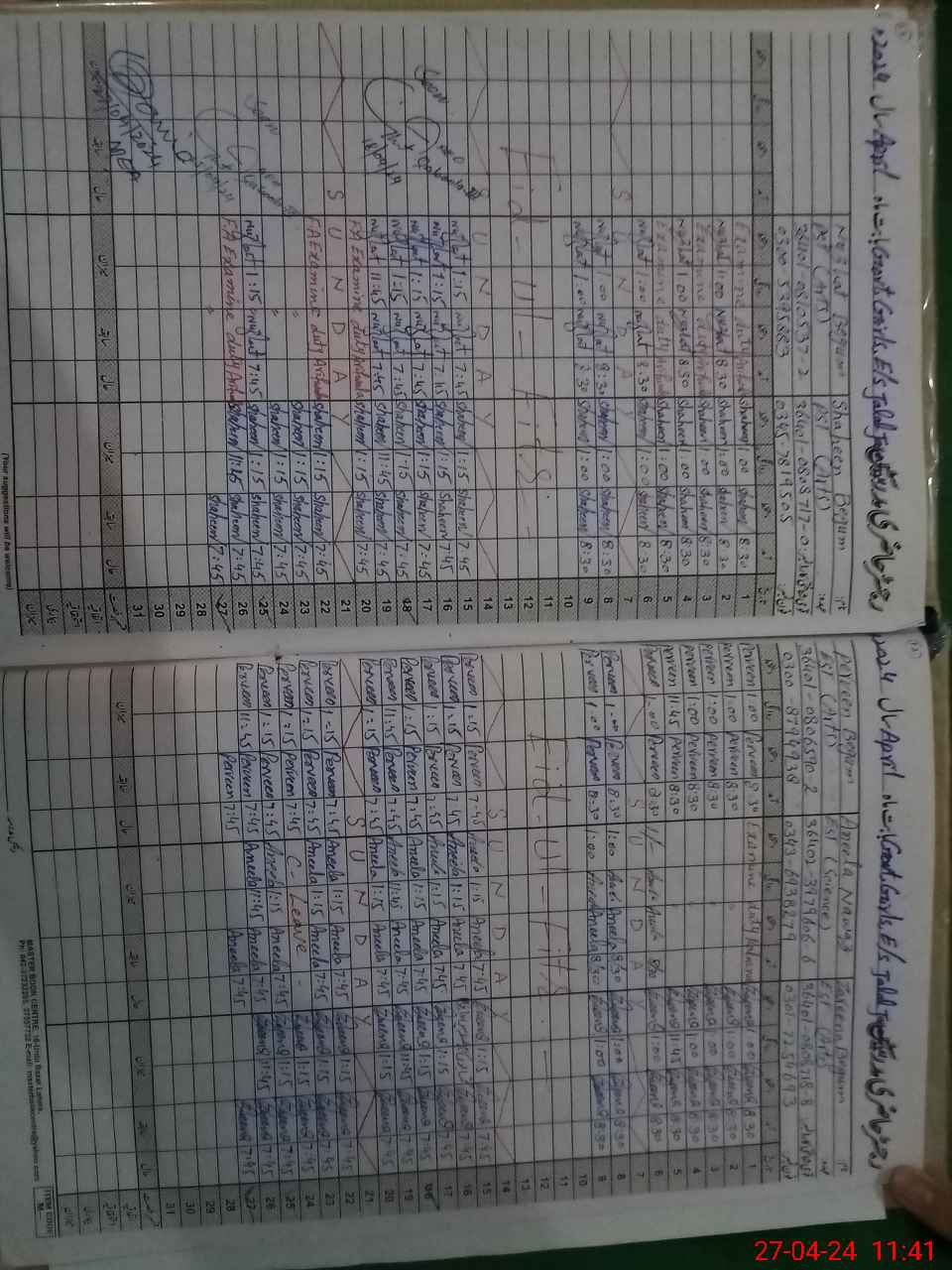 | 36**** | Nu**** Be**** | 1 | 1 | 0 | 0 | 0 | 0 | 0 | 0 | 0 | 0 | 0 | Exam Duty |