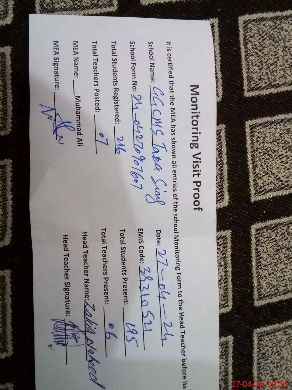 | EMIS Code: 39310521 | Name of School: GGCMS QILA TARA SINGH | |||