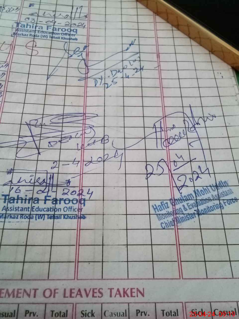 | CNIC | Full Name | Designation | R/C | Absence During Last Calender Month |