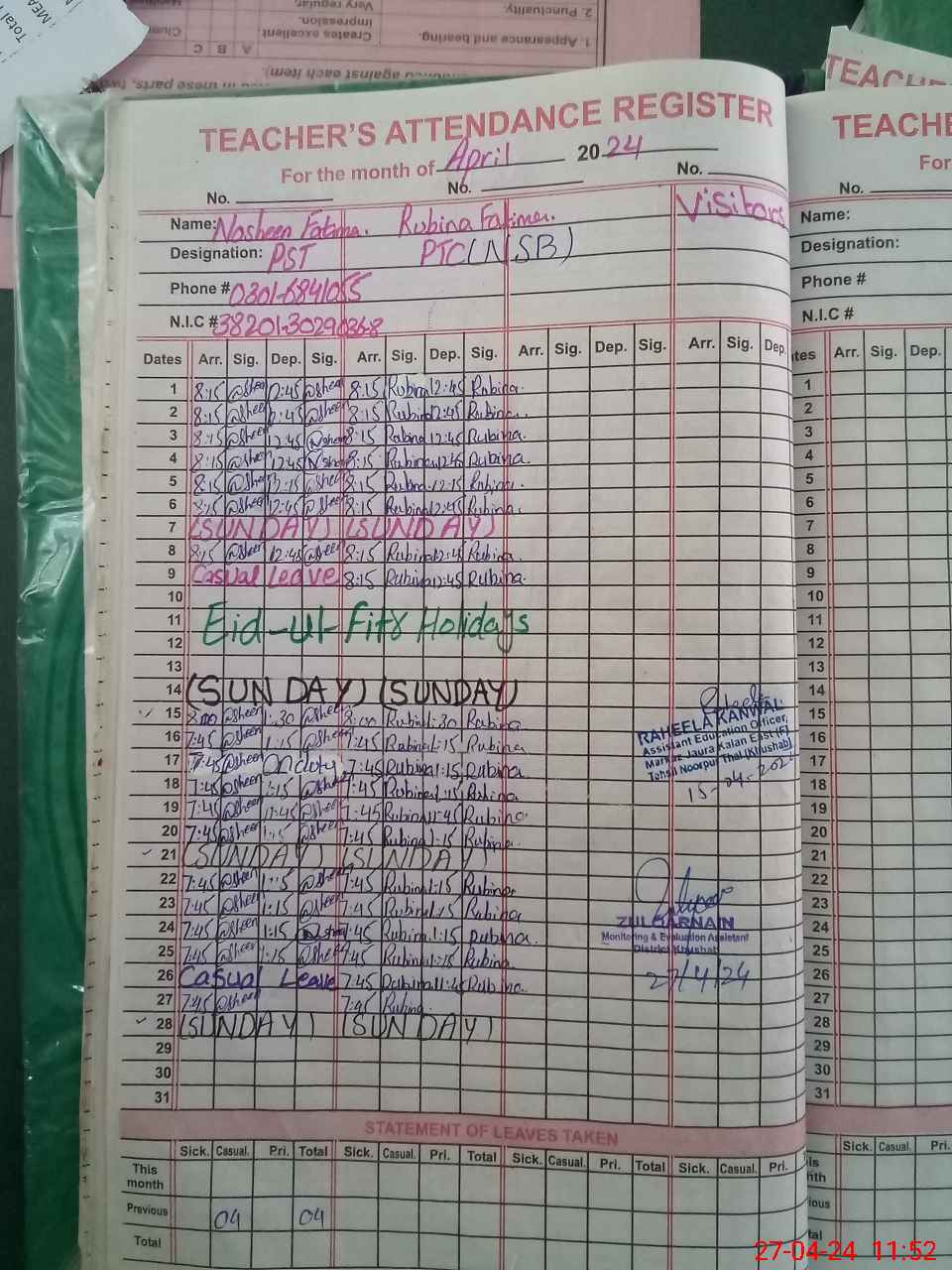 | Name: NO**** FA**** Designation: (School Headmaster's/Headmistress's) PST Phone/Cell Number: 03**** |