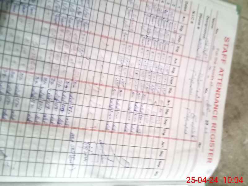 | CNIC | Full Name | Designation | R/C | Absence During Last Calender Month |