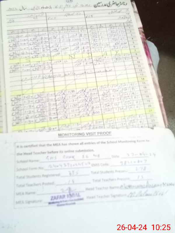 | EMIS Code: 38210807 | Name of School: GHS CHAK NO. 56 MB | |||