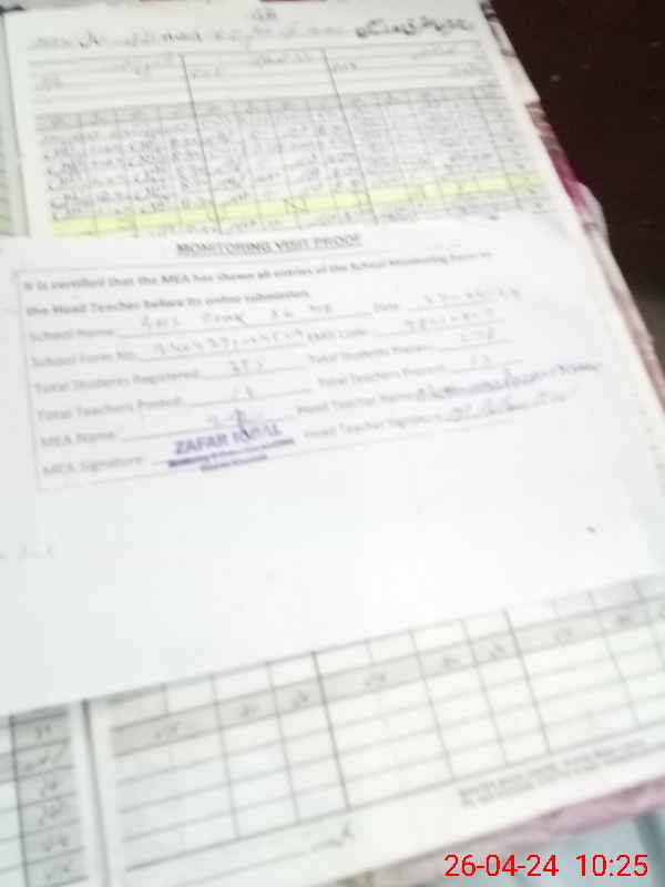 | Attendance Register | Head Teacher | MEA with School | Visit Proof |