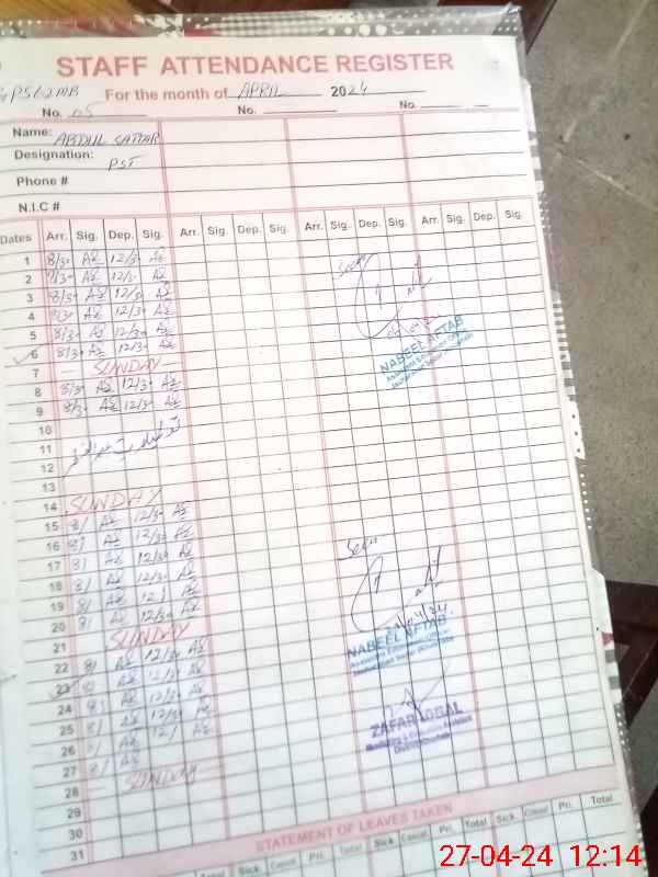 | Name: GH**** SH**** Designation: (School Headmaster's/Headmistress's) PST Phone/Cell Number: 03**** |