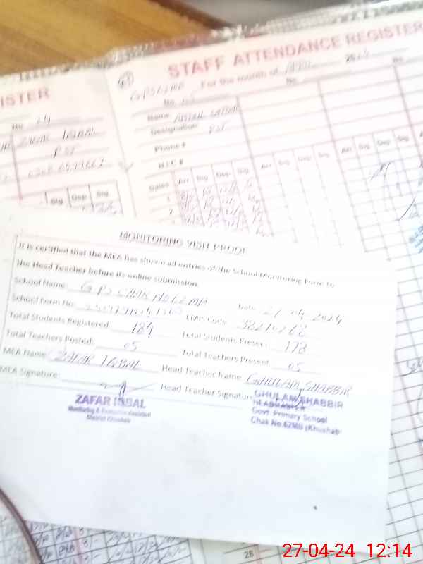 | Attendance Register | Head Teacher | MEA with School | Visit Proof |