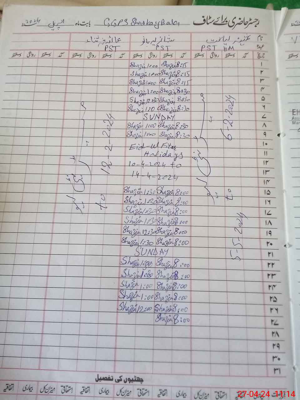 | 35**** | Ai**** Sa**** | PST | Regular | 31 | 0 | 0 | 31 | 0 | 0 | 0 | 0 | 0 | Maternity |