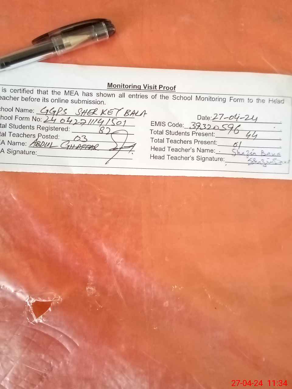 | EMIS Code: 39320596 | Name of School: GGPS SHER KAY BALA | |||