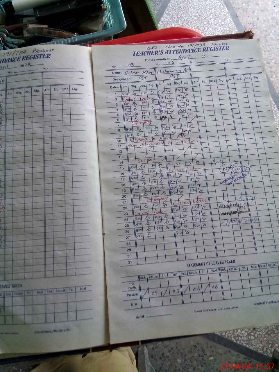 | Name: Za**** Hu**** Designation: (School Headmaster's/Headmistress's) PST Phone/Cell Number: 03**** |