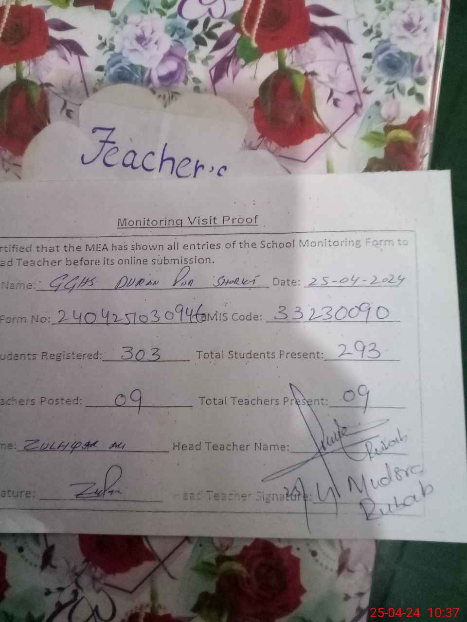 | EMIS Code: 33230090 | Name of School: GGHS DOURAN PUR | |||