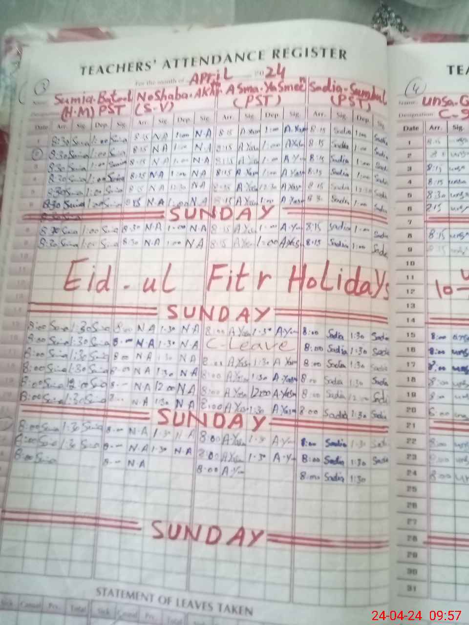 | Leave | Duty | Absent | Maternity | Medical | Ex- Pak |