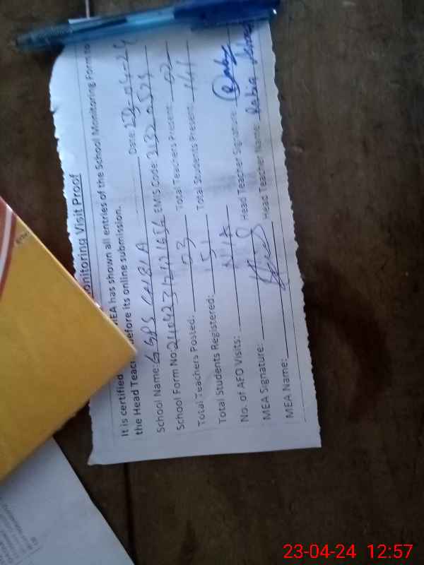| Attendance Register | Head Teacher | MEA with School | Visit Proof |