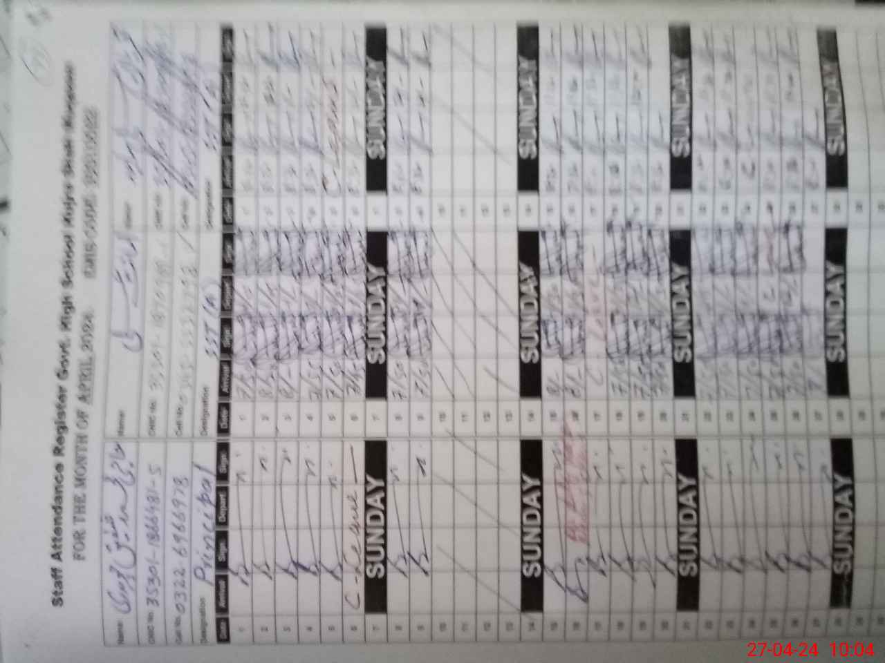 | CNIC | Full Name | Designation | R/C | Absence During Last Calender Month |