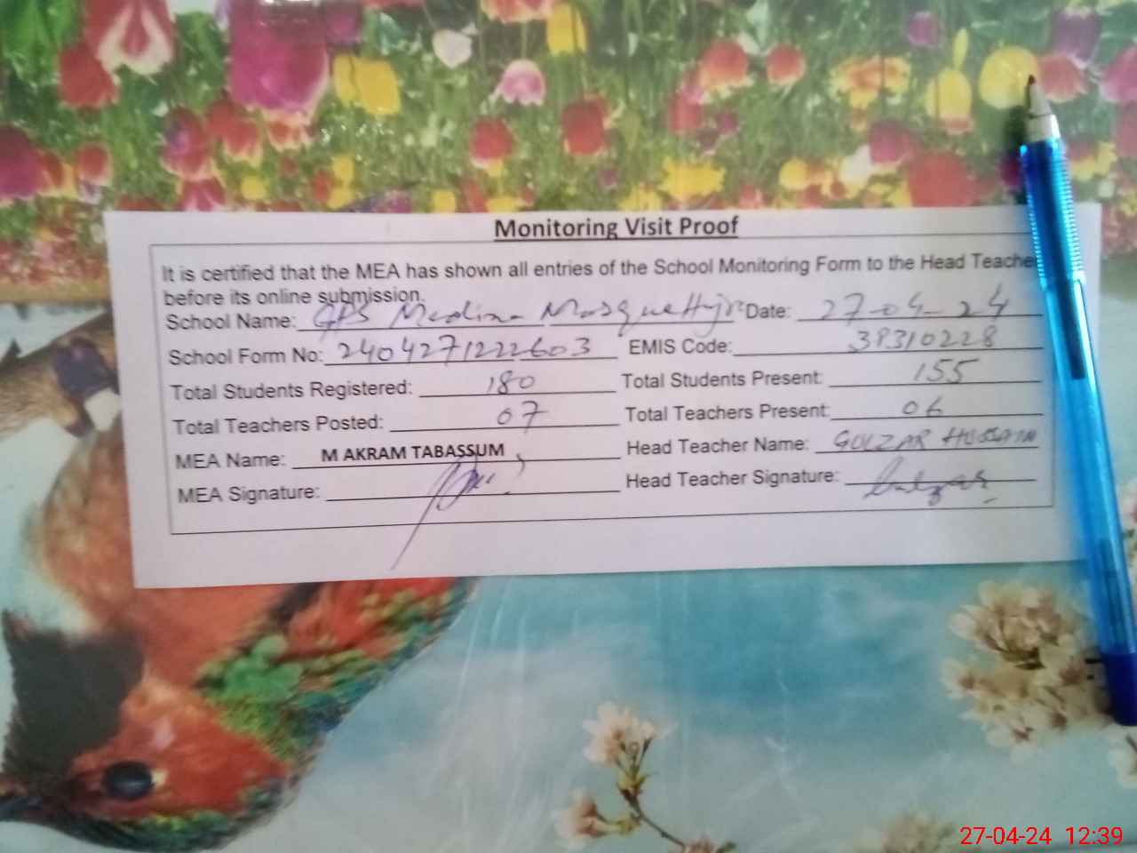 | EMIS Code: 39310228 | Name of School: GPS MADINA MOSQUE HUJRA | |||