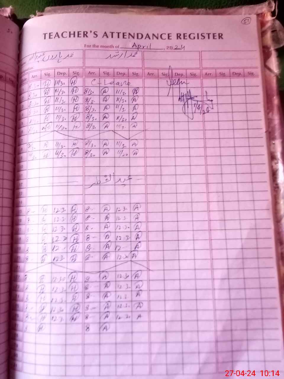 | CNIC | Full Name | Designation | R/C | Absence During Last Calender Month |