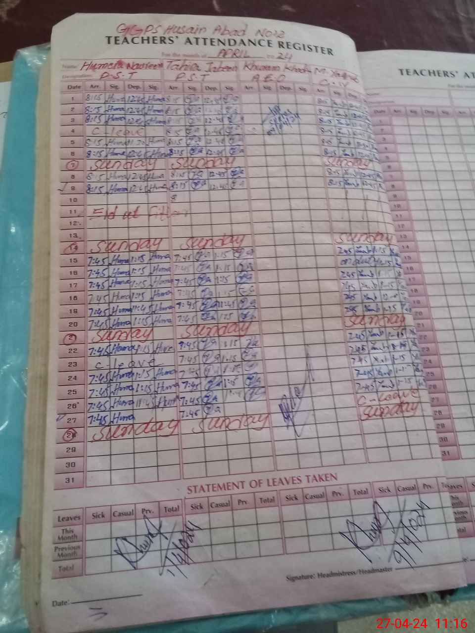 | Name: HU**** NO**** Designation: (School Headmaster's/Headmistress's) PST Phone/Cell Number: 03**** |