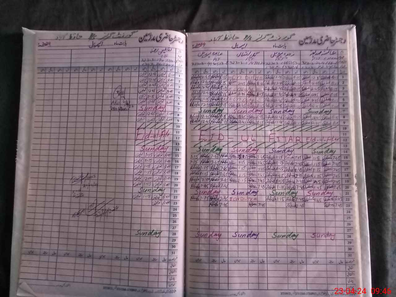 | CNIC | Full Name | Designation | R/C | Absence During Last Calender Month |