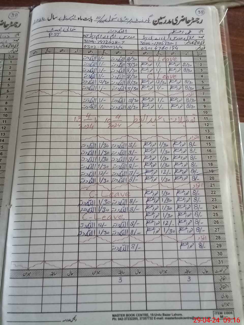 | Name: Mu**** Az**** Designation: (School Headmaster's/Headmistress's) PST Phone/Cell Number: 03**** |