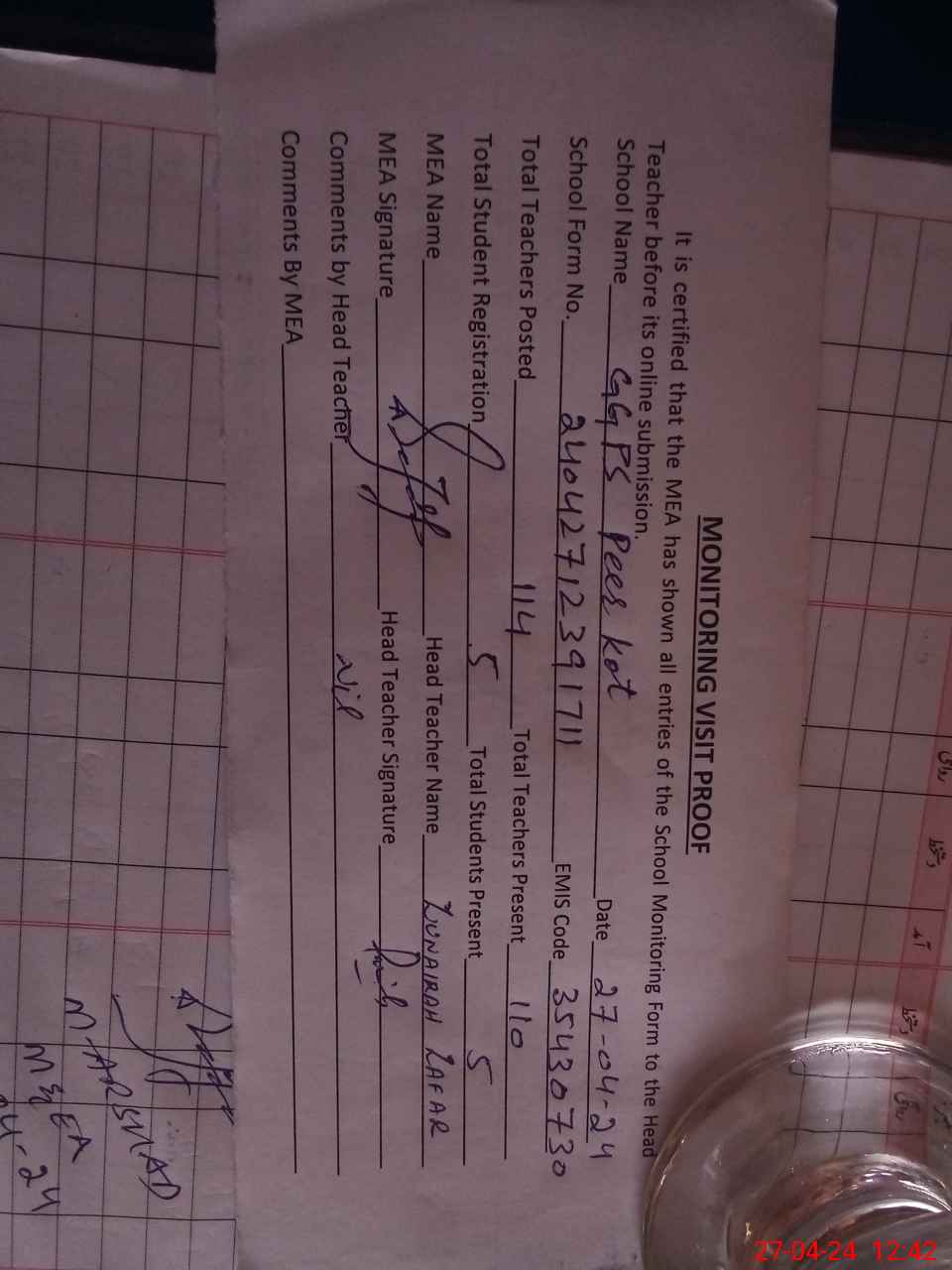 | EMIS Code: 35430730 | Name of School: GGPS PEER KOT | |||