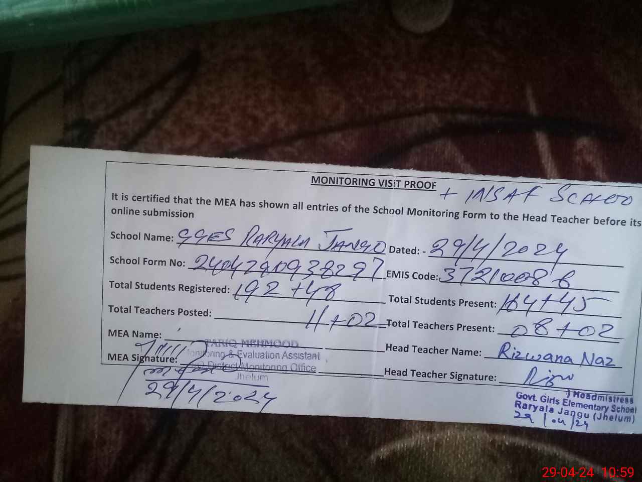 | Monitoring Date: 29-04-2024 | Start Time: 29-04-2024 09:38 AM | End Time: 29-04-2024 10:59 AM | Name of MEA: Ta**** Me**** | |