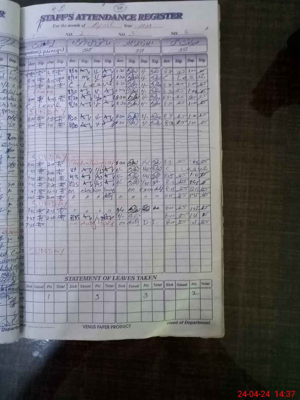 | 35**** | As**** Al**** Ri**** | SST | Regular | 0 | 0 | 0 | 0 | 0 | 0 | 0 | 0 | 0 | Exam Duty |