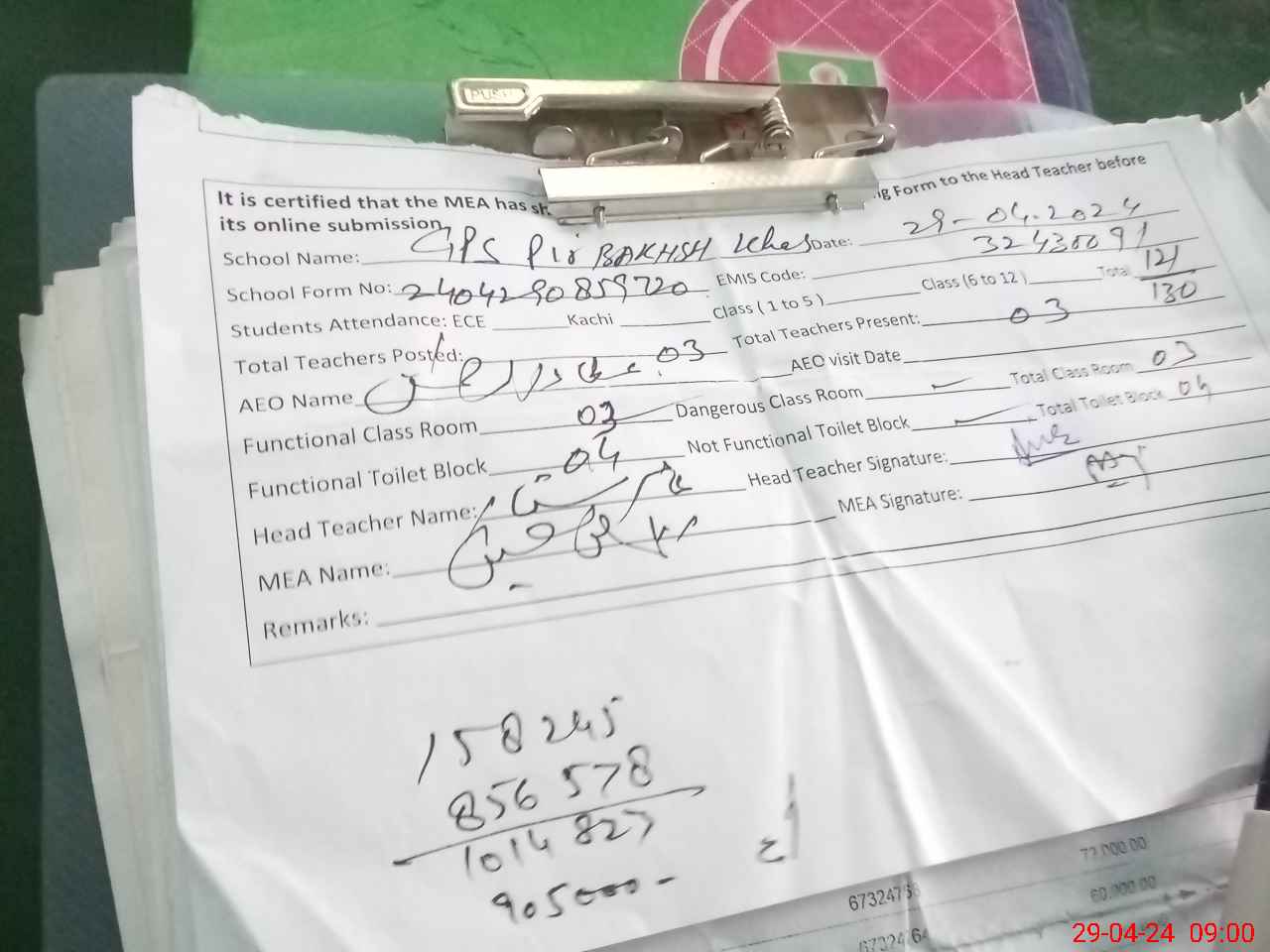 | EMIS Code: 32430091 | Name of School: GPS PIR BAKHSH KHAS | |||