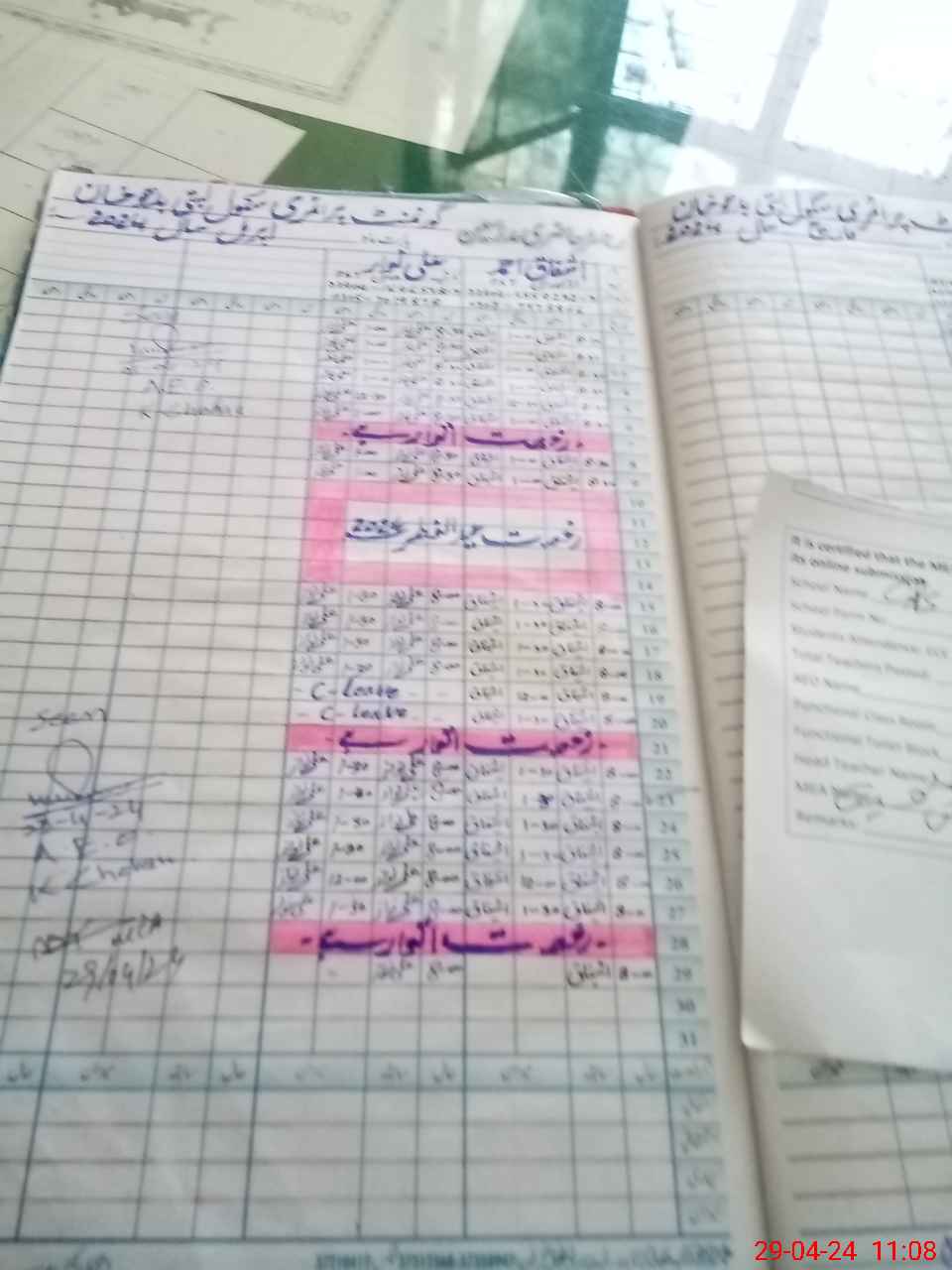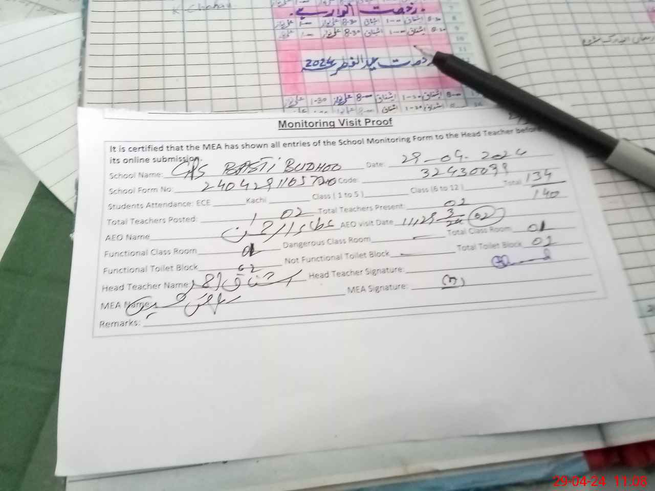 | Attendance Register | Head Teacher | MEA with School | Visit Proof |