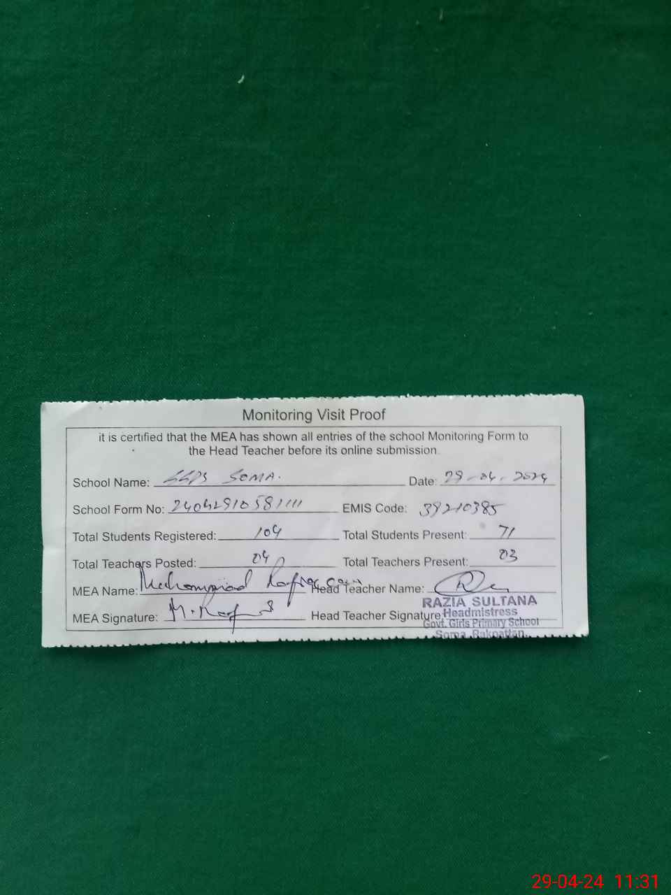| EMIS Code: 39210385 | Name of School: GGPS CHAK SOMA | |||