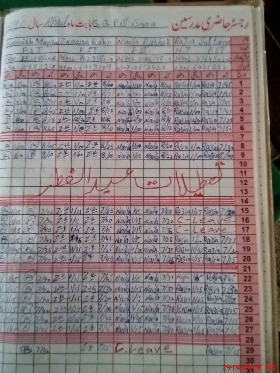 | Name: Zu**** Kh**** Designation: (School Headmaster's/Headmistress's) PST Phone/Cell Number: 03**** |