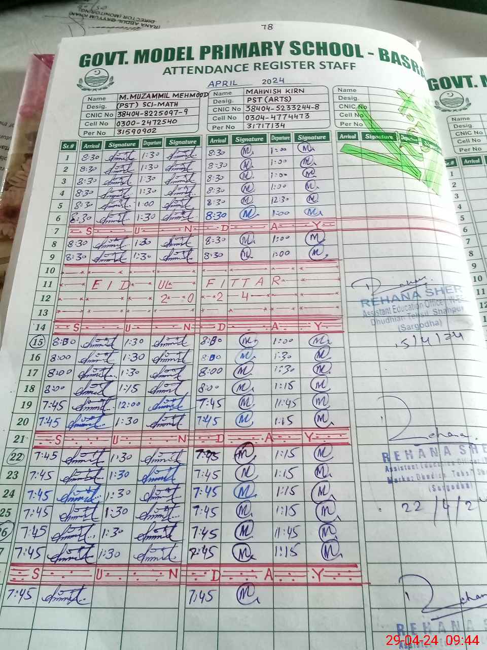 | Name: MU**** MU**** Designation: (School Headmaster's/Headmistress's) PST Phone/Cell Number: 03**** |