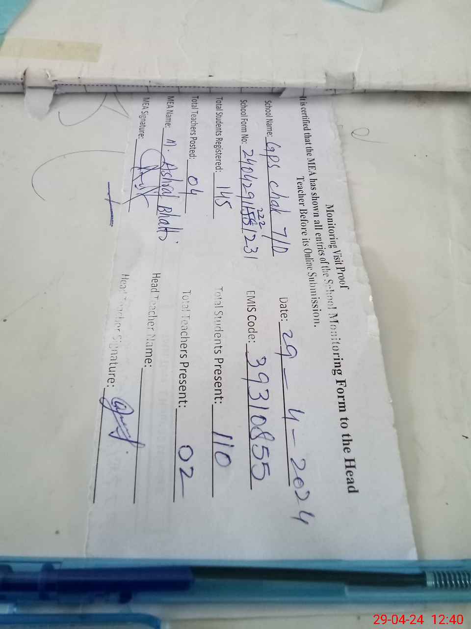 | EMIS Code: 39310855 | Name of School: GPS CHAK 7/D | |||