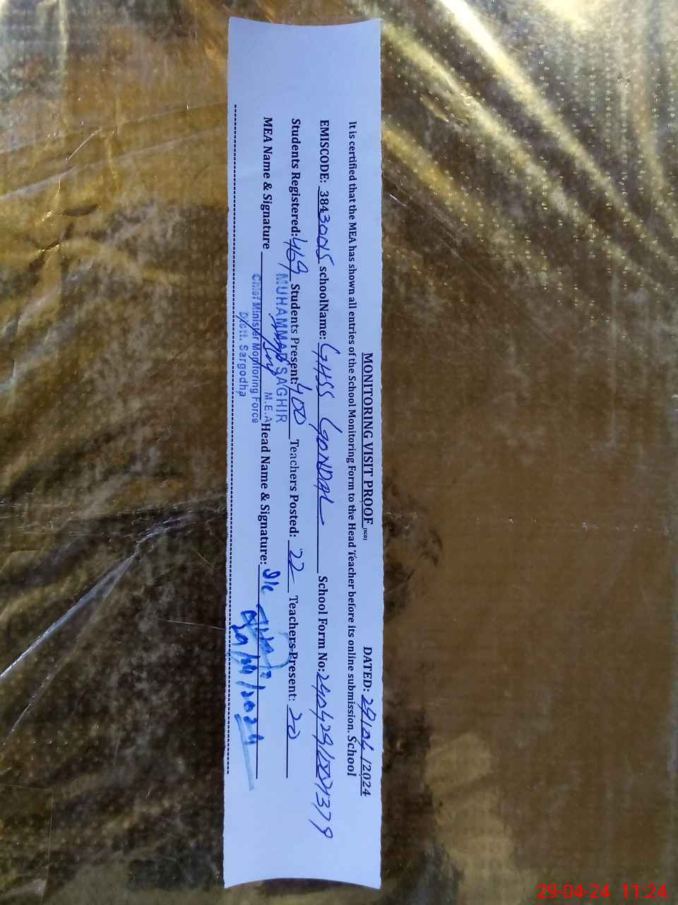 | EMIS Code: 38430015 | Name of School: GHSS GONDAL SARGODHA | |||