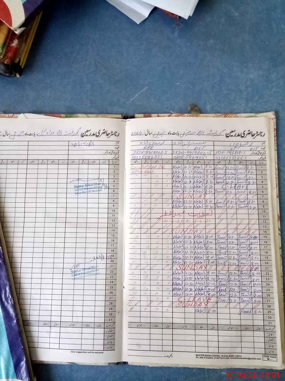 | CNIC | Full Name | Designation | R/C | Absence During Last Calender Month |