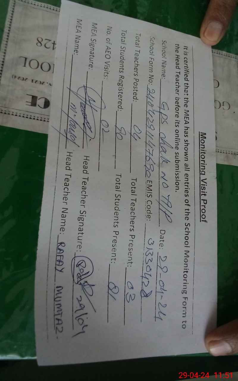 | EMIS Code: 31330428 | Name of School: GPS CHAK NO. 79/P | |||