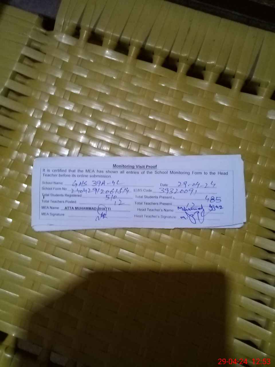 | EMIS Code: 39320091 | Name of School: GHS CHAK 39-A/4L | |||