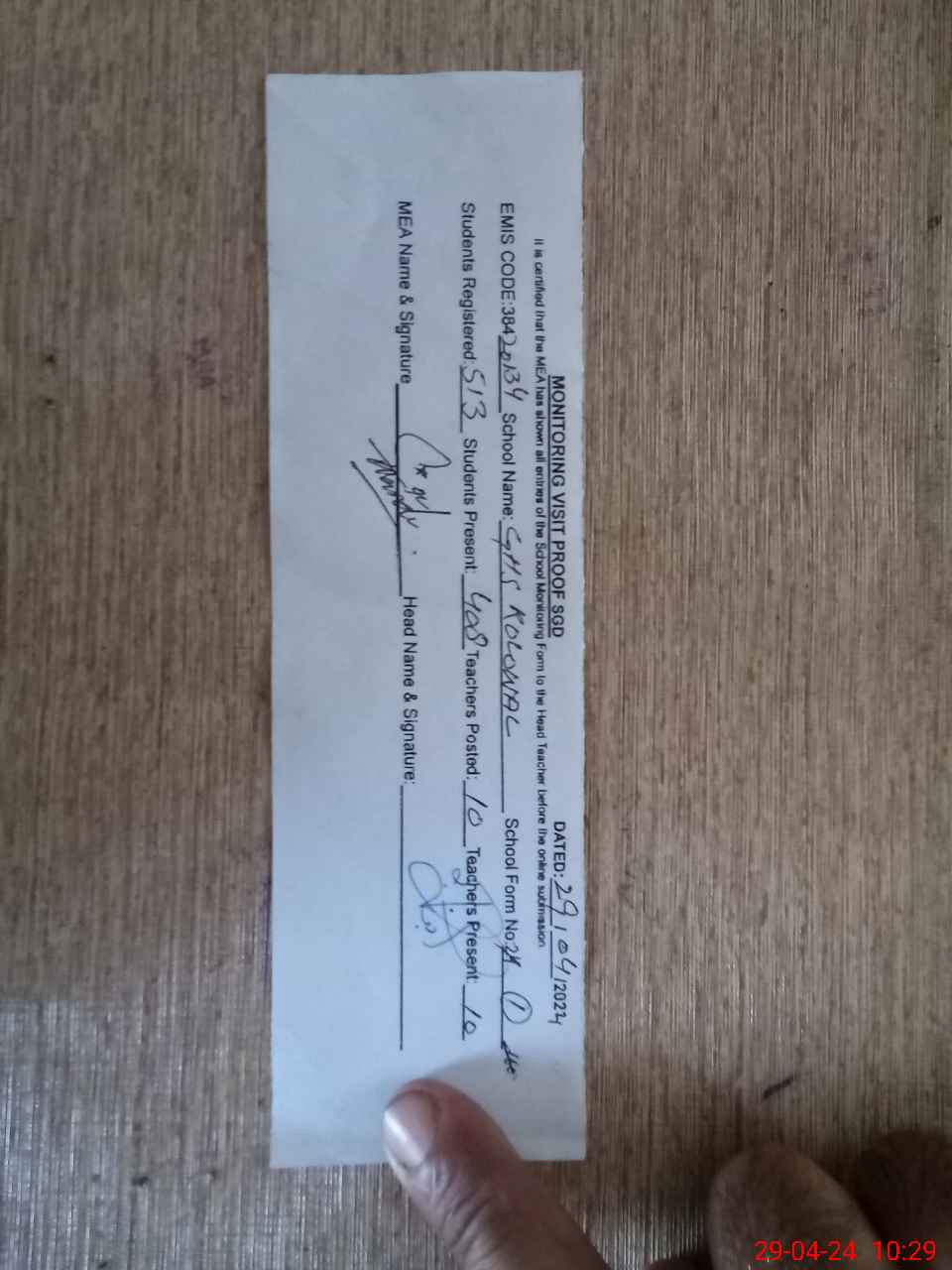 | EMIS Code: 38420134 | Name of School: GHS KOLOWAL NANGIANA | |||