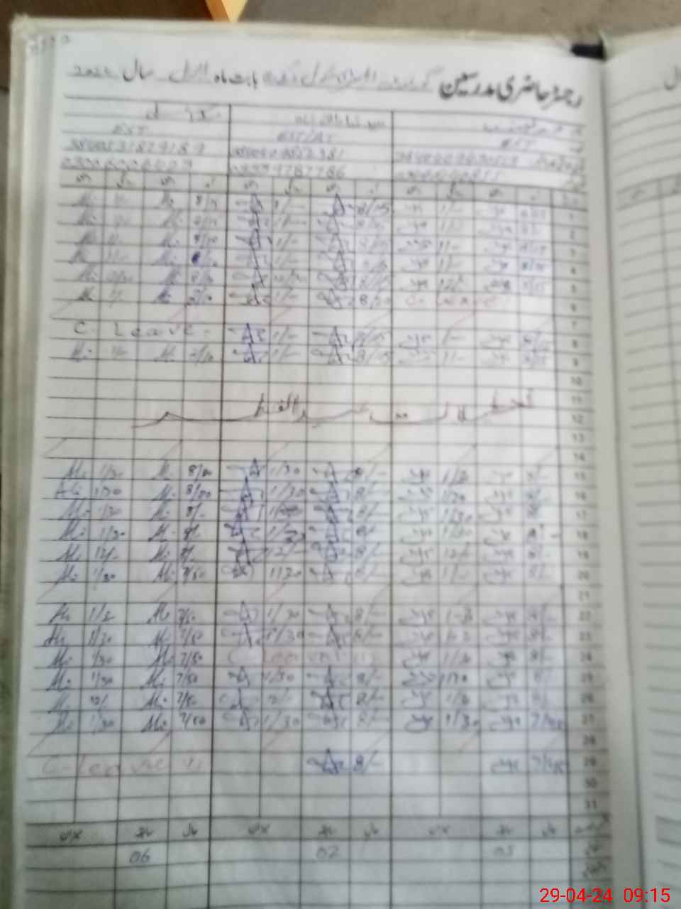 | CNIC | Full Name | Designation | R/C | Absence during last cal. month |