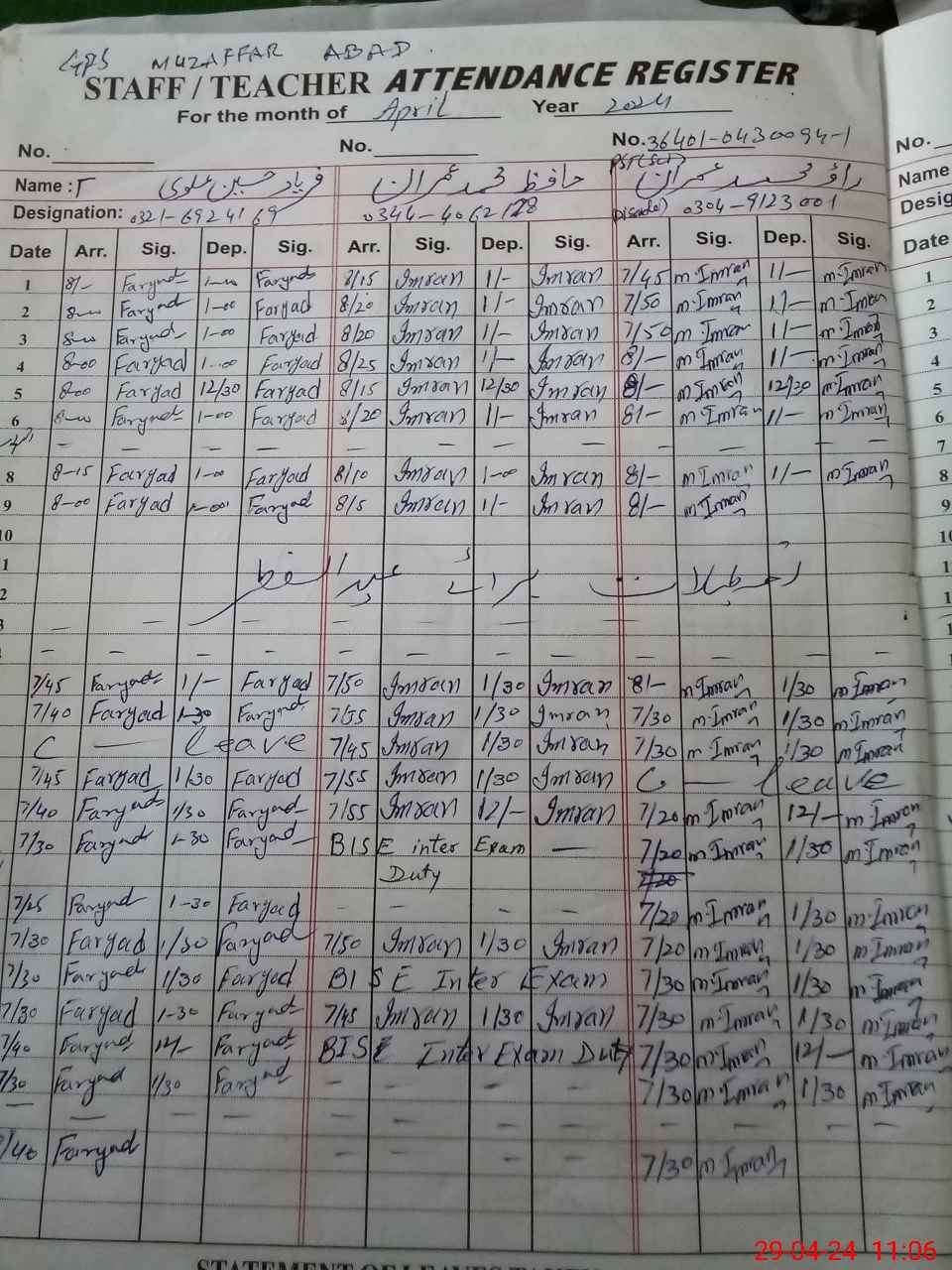 | Name: HA**** MU**** IM**** Designation: (School Headmaster's/Headmistress's) PST Phone/Cell Number: 03**** |