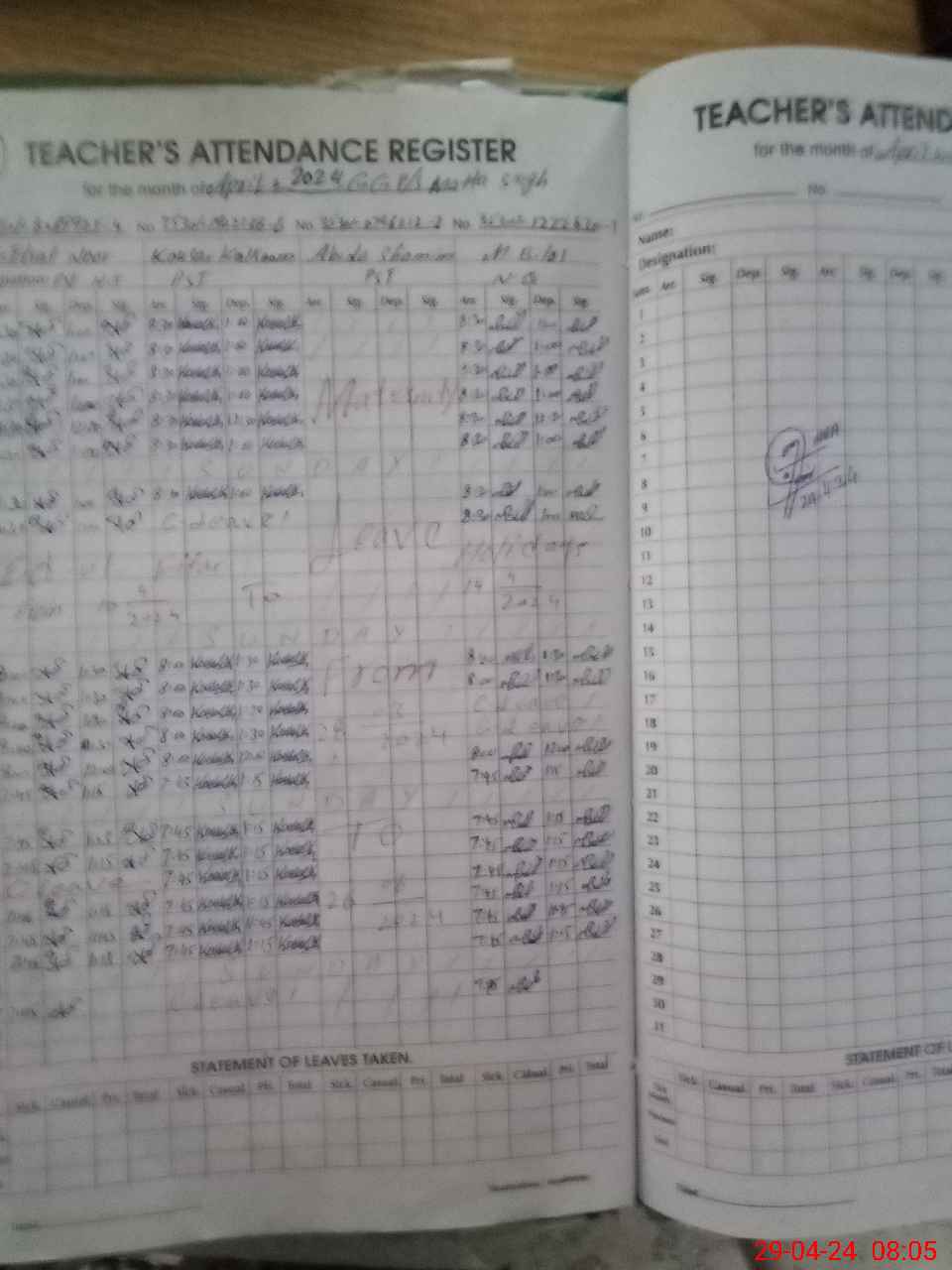| 35**** | Ab**** Sh**** | PST | Regular | 30 | 0 | 0 | 30 | 0 | 0 | 0 | 0 | 0 | Maternity |