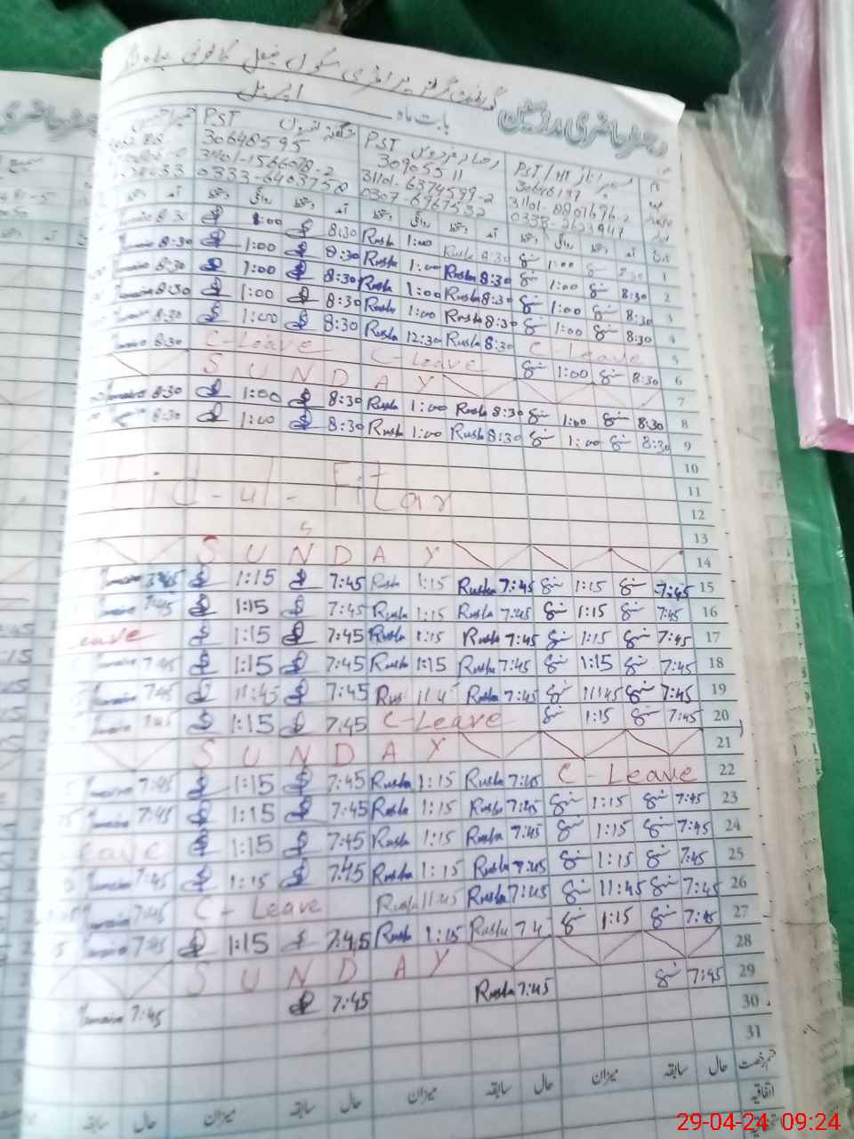 | Leave | Duty | Absent | Maternity | Medical | Ex- Pak |