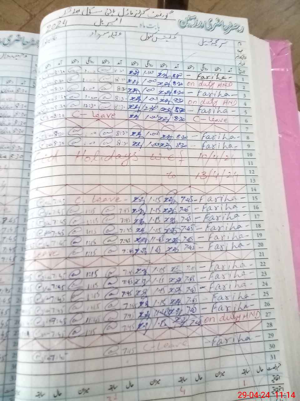 | 31**** | Ha**** Al**** Za**** | CIV | 0 | 0 | 0 | 0 | 0 | 0 | 0 | 0 | 0 | Absent (Un-Authorized) | |