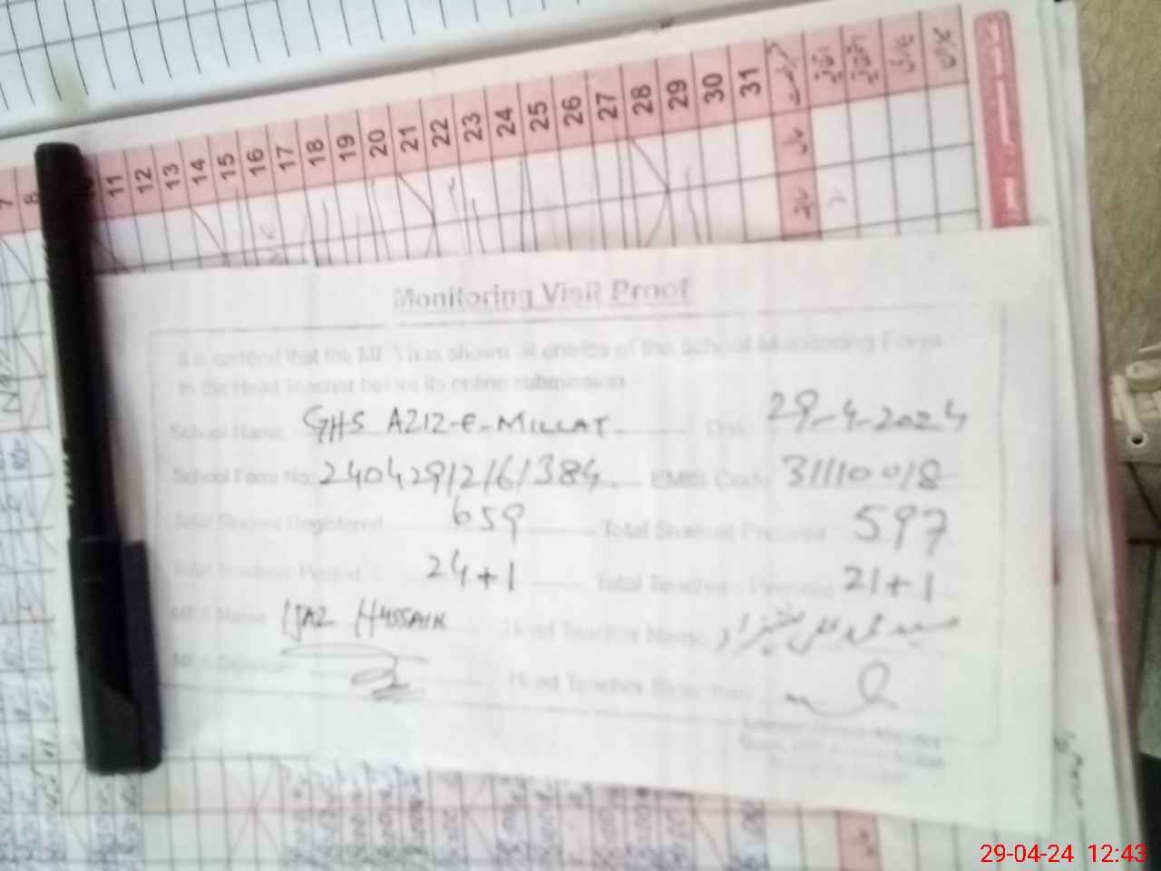 | Attendance Register | Head Teacher | MEA with School | Visit Proof |