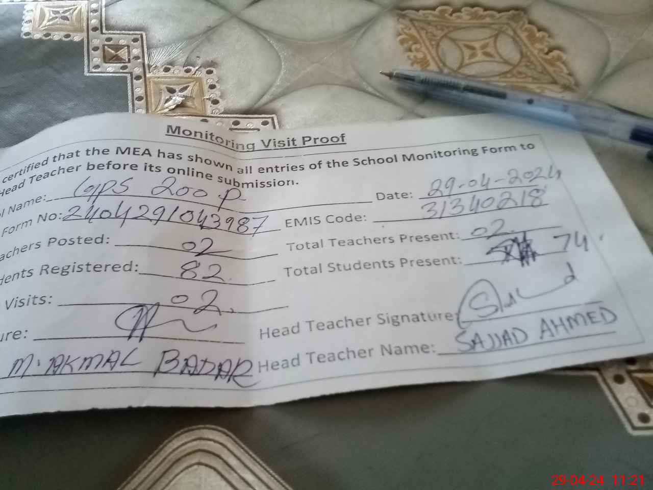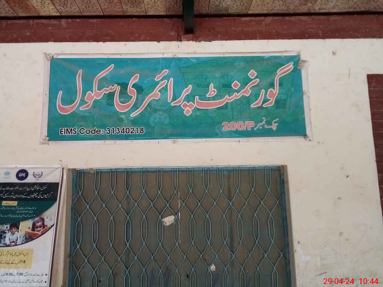 | EMIS Code: 31340218 | Name of School: GPS CHAK NO 200/P | |||