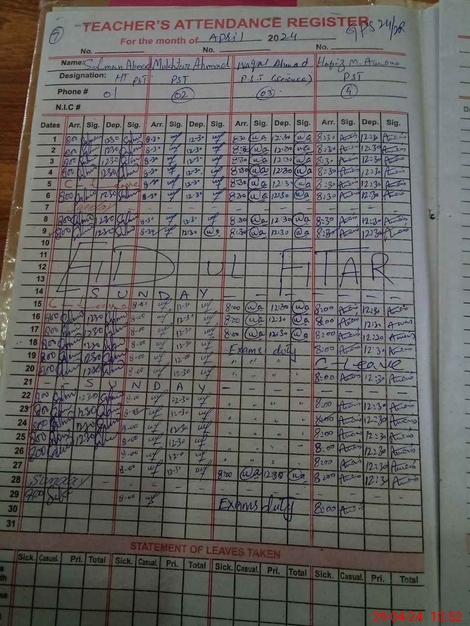 | Name: Ha**** Mu**** Aw**** Designation: (School Headmaster's/Headmistress's) PST Phone/Cell Number: 03**** |
