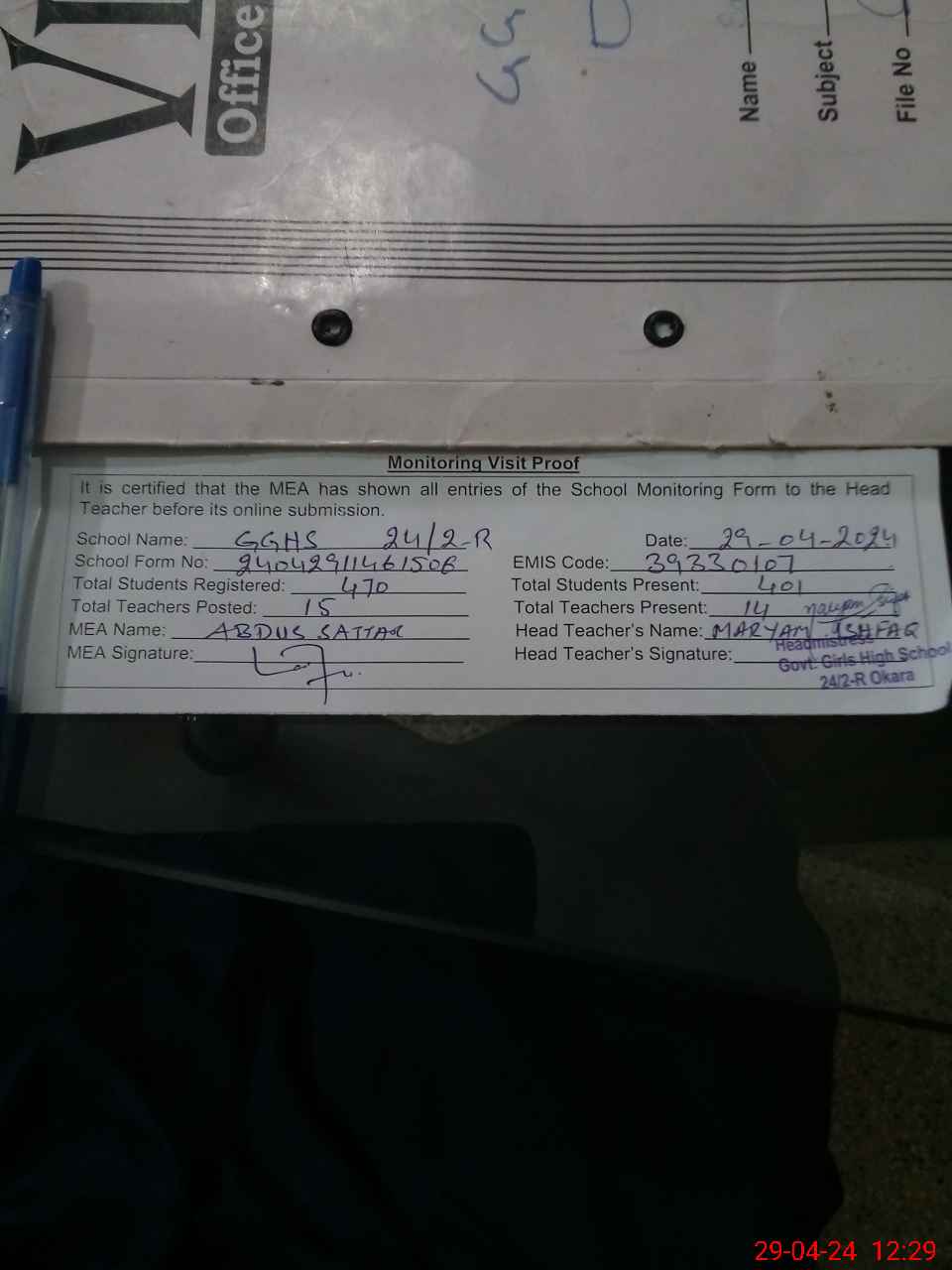 | EMIS Code: 39330107 | Name of School: GGHS CHAK NO. 24/2-R | |||