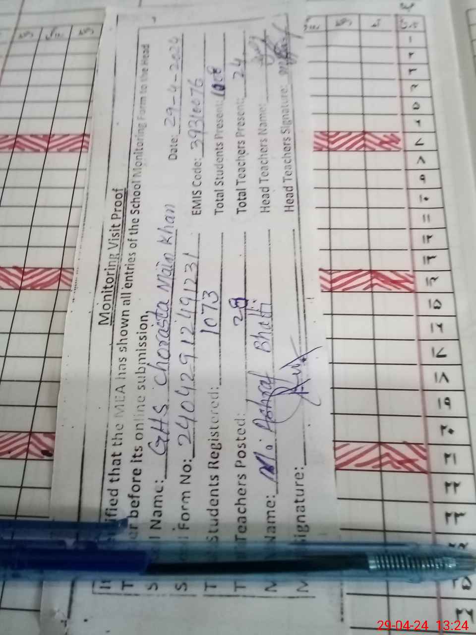 | EMIS Code: 39310076 | Name of School: GHS CHAURASTA MIAN KHAN | |||